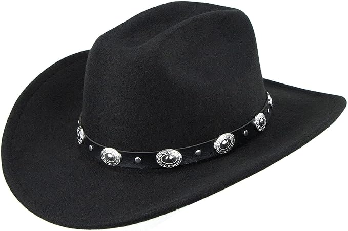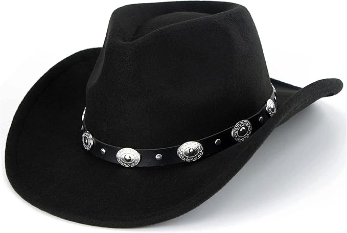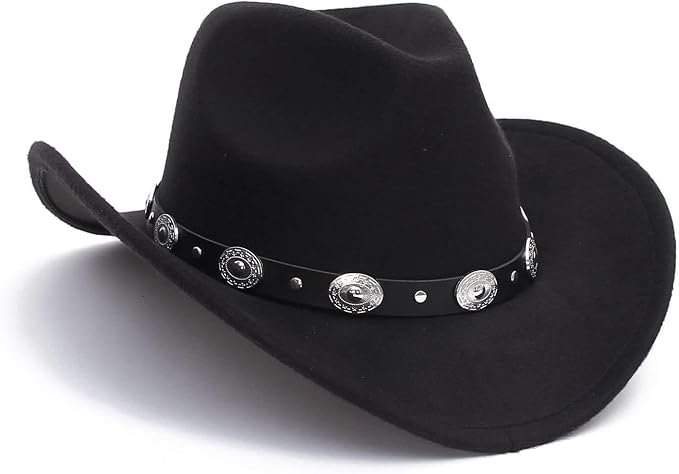 Classic-Western-Cowboy-Hat Wide-Brim Felt-Cowgirl-Fedora-Jazz-Hat for Women Men(Size:M)