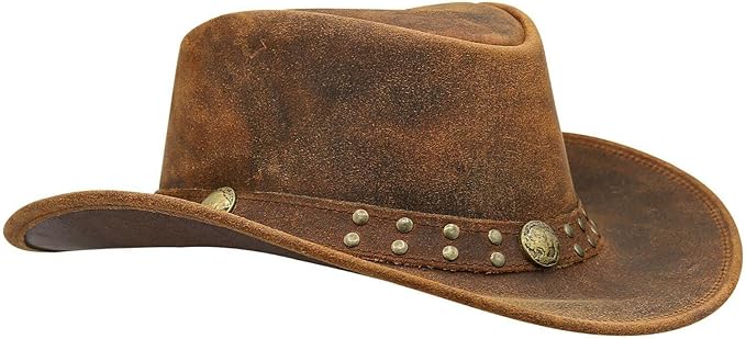 Australian Cowboy Leather hat Unisex Adult for Men and Women Shapeable Outback Western Style Wide Brim