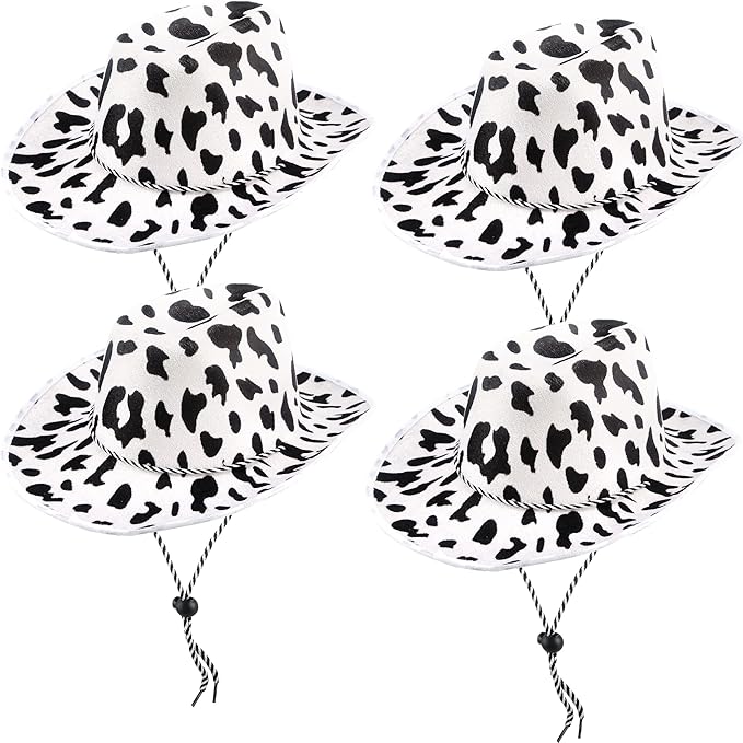 4 Pack Cow Print Cowboy Hat Black and White Cow Pattern Rodeo Western Cowboy Hats for Cowboy Cowgirl Theme Party Halloween