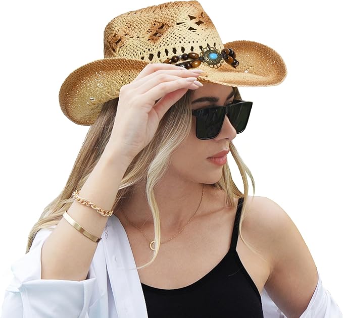 Straw Cowboy Hats for Women and Men Western Cowgirl Hat with 4 Decorative Bands for Everyday Wear or of Cowgirl Costume