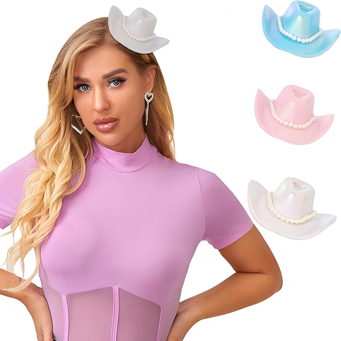 Cowboy Mini Hat Western Rhinestone Cowboy Hat Neon Women Cowgirl Hats Disco Party Cap Cosplay Costume Accessory 3PCS