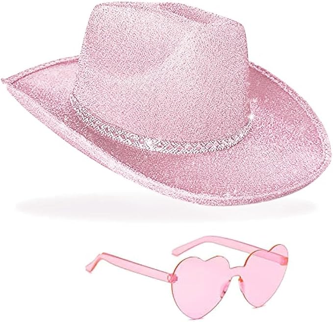 Cowgirl Hat with Heart Sunglasses Glitter Cowboy Hat for Women & Girls Cosplay Bachelor Party Costume Hats…