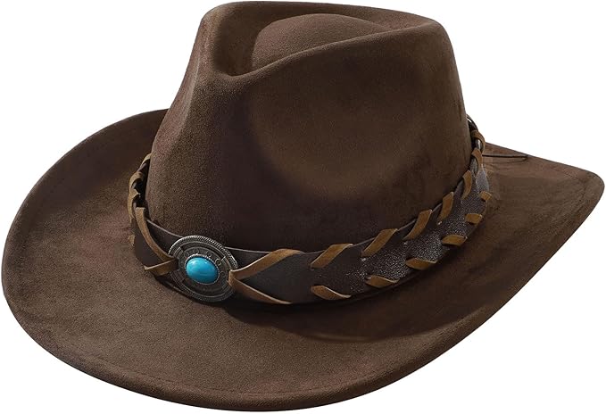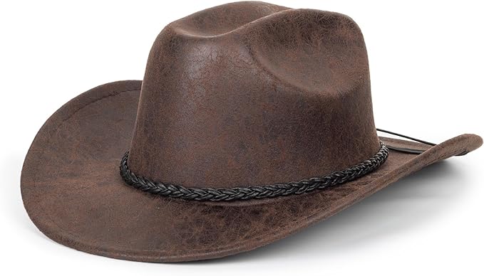 Cowboy Hats for Men and Women, Western Leather Outback Wide Brim Rain Cap