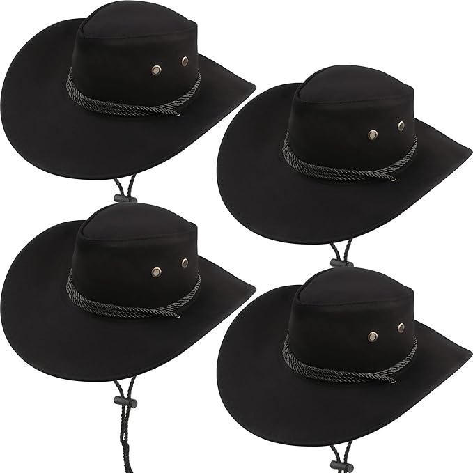 4 Pack Adult Cowboy Hat Wide Brim Faux Felt Leather Western Cowboy Hat for Men Women Cowboy Costume Accessories Party Supplies