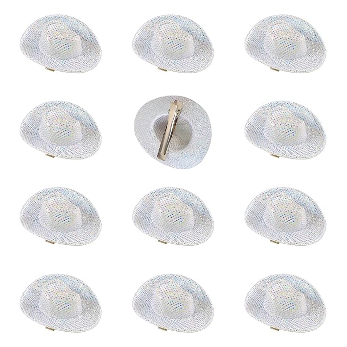 12 Pcs Mini Disco Cowboy Hat Hair Clips Western Cowgirl Hat Hair Barrettes for Women Dot Glitter White
