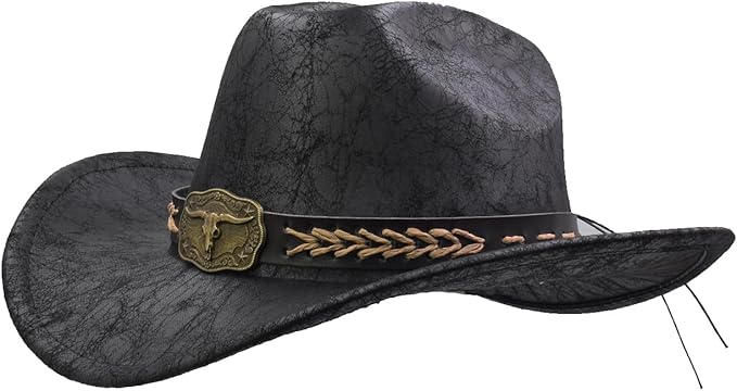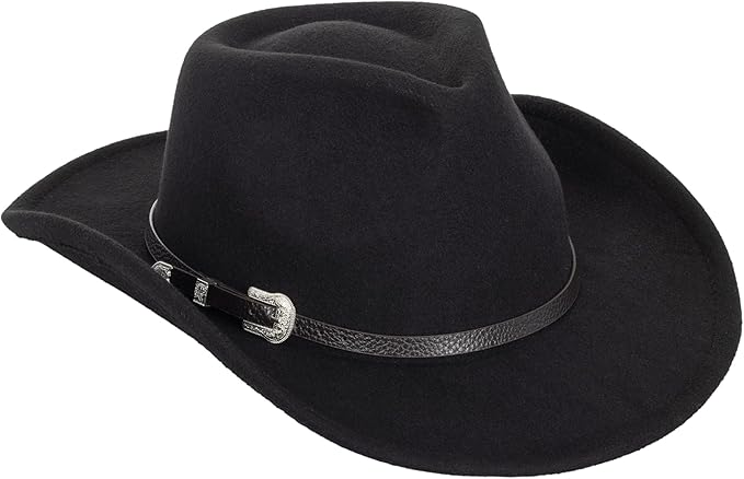Western Cowboy Hat for Women & Men Leather Cowgirl Hat Wide Brim with Belt Buckle