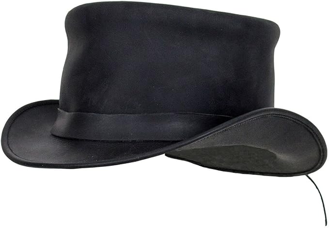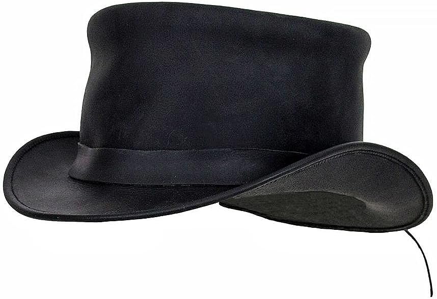 Genuine Leather Top Hat Fashion Gentleman Hat Black Deadman Top Hat for Men Women