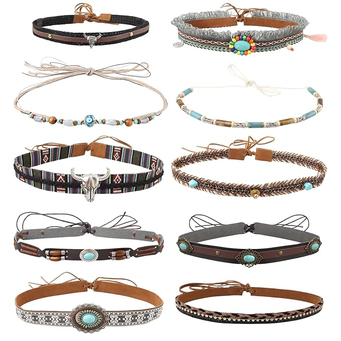 10 Pcs Cowboy Hat Bands Ethnic Replacement Leather Western Hat Belts Rural Cowgirl Beaded Turquoise Hatbands Men