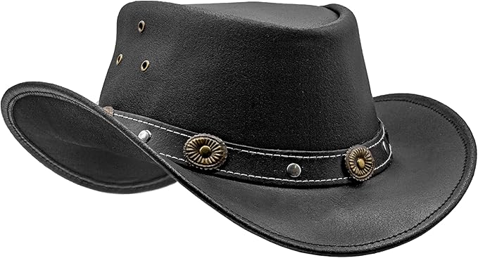 Australian Cowboy Leather hat Unisex Adult for Men and Women Shapeable Outback Western Style Wide Brim